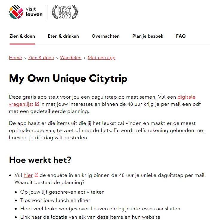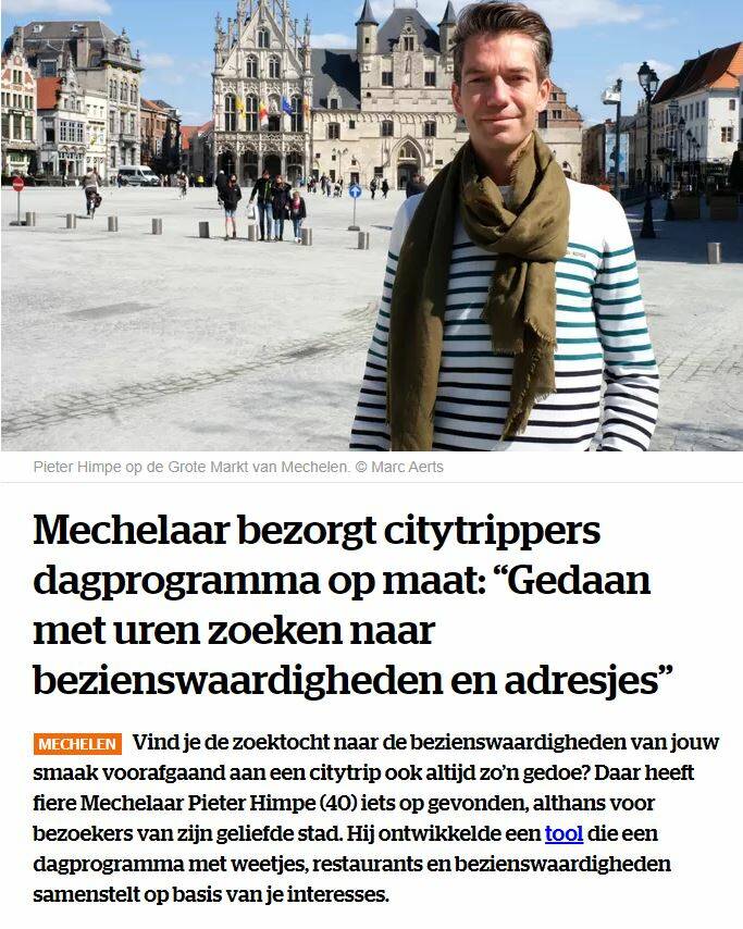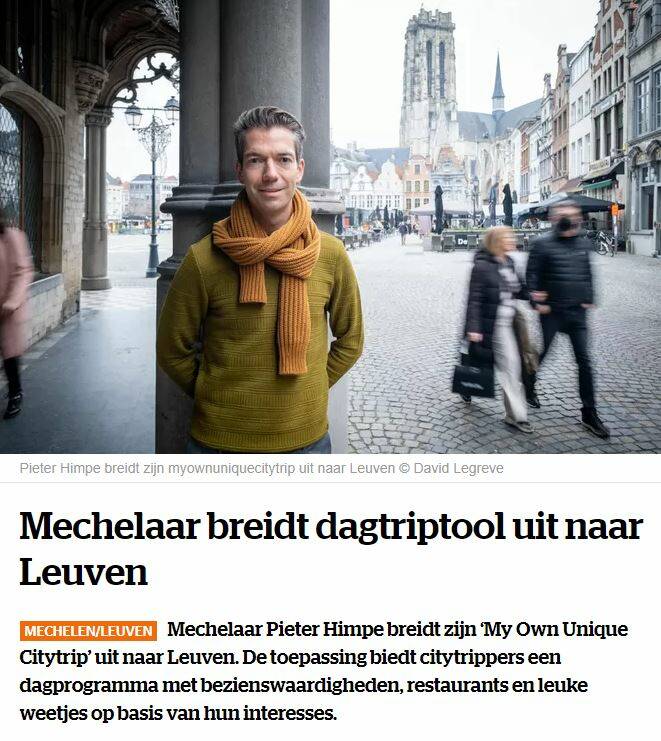 Het concept MY OWN UNIQUE CITYTRIP heeft al heel wat mensen leuke tijden opgeleverd in Leuven, Mechelen en Hasselt. Dit is ook de pers niet ontgaan. Hieronder persartikels waar MY OWN UNIQUE CITYTRIP centraal staat.